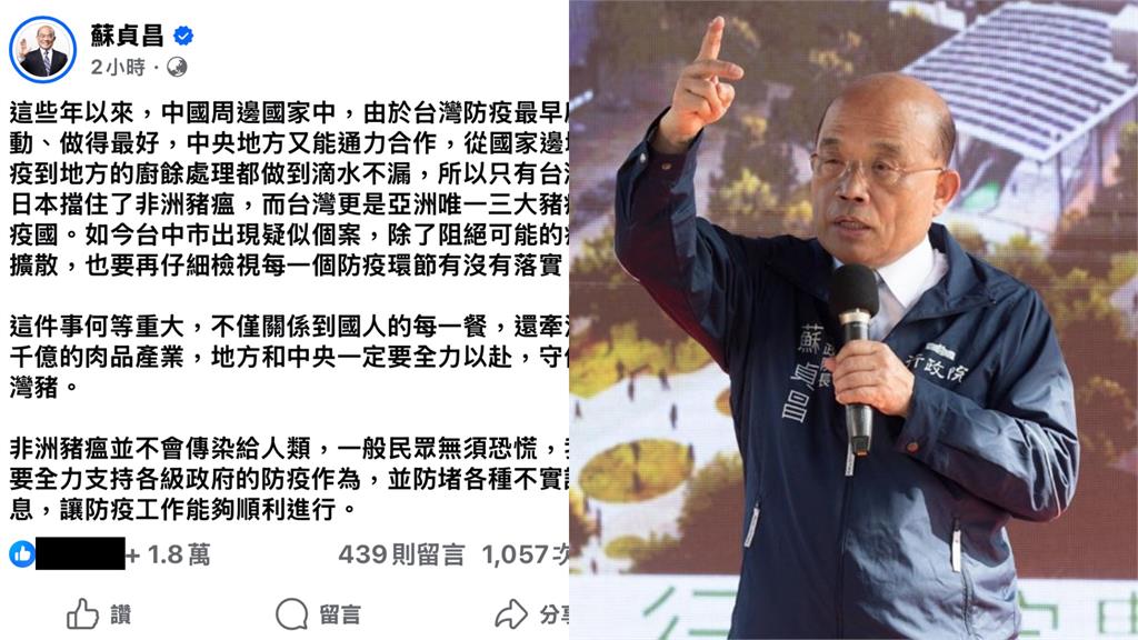 台中市長盧秀燕針對台中豬場爆非洲豬瘟一事說明。圖/台視新聞 台灣首次檢出非洲豬瘟病毒核酸陽性!農業部稍早表示,在台中梧棲區養豬場的死亡豬隻檢體,驗出非洲豬瘟陽性。目前農業部已預防性撲殺場內195頭豬隻,並宣布從今天12點開始全國豬隻禁運禁宰,並全面禁止使用廚餘。台中市長盧秀燕也出面說明,台中農業局昨晚就已經跟中央到豬場撲殺全部豬隻。她強調這件事不可小覷,因養豬業是台灣重要的產業,若發生疑似案例就要高度重視,地方跟中央會攜手合作,避免事態再擴大,也希望牠是一個個案。責任編輯/網路中心