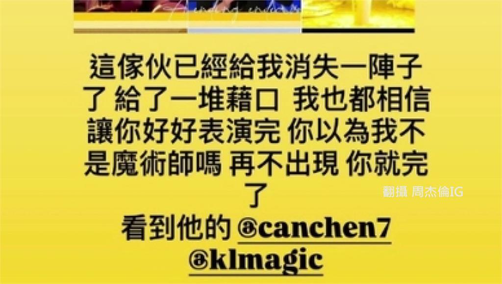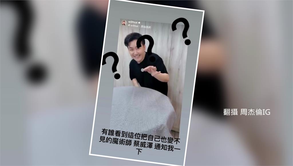 藝人周杰倫近日在IG限動發出「尋人啟事」,罕見動怒指出,昔日好友魔術師蔡威澤消失了,還說「再不出現他就完了」,據週刊報導,蔡威澤替周杰倫代操比特幣投資,金額上億元,如今音訊全無,日前在宣布暫停使用社群,傳出周杰倫已準備對他提出告訴。