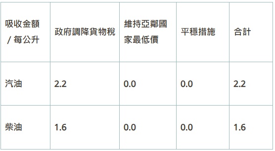 本週依油價公式及政府調降貨物稅(汽、柴油每公升各共2元及1.5元)調整國內油價,並持續以亞鄰國家最低價及平穩措施運作,協助穩定國內油價,114年累計至9月底止,台灣中油共吸收約63.21億元。