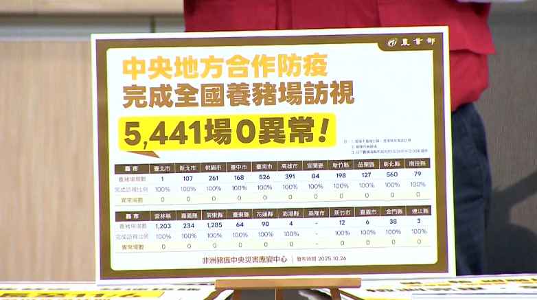 全國疫調結果也出爐,陳駿季表示,全國5441場豬場調查結果0異常,沒有異常死亡,有經核酸檢測部分皆呈現陰性。