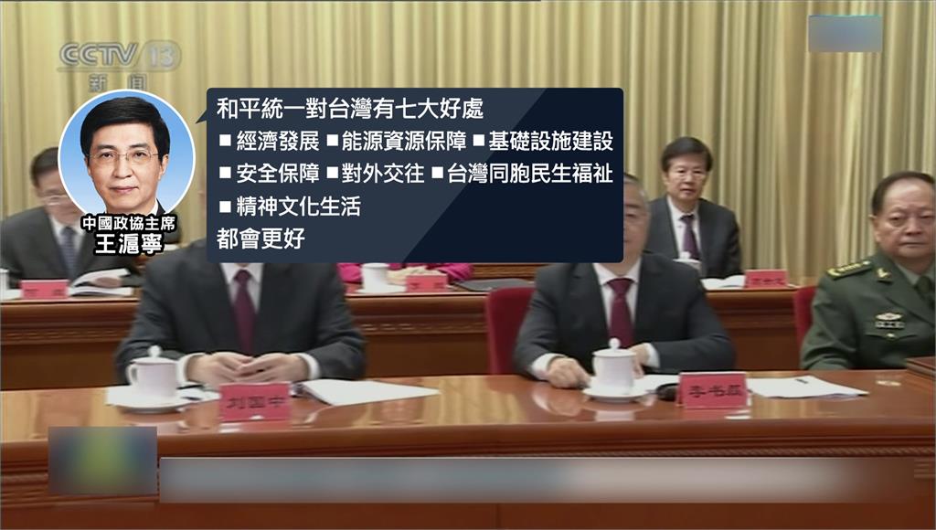 王滬寧談和平統一對台灣7大好處。圖/台視新聞