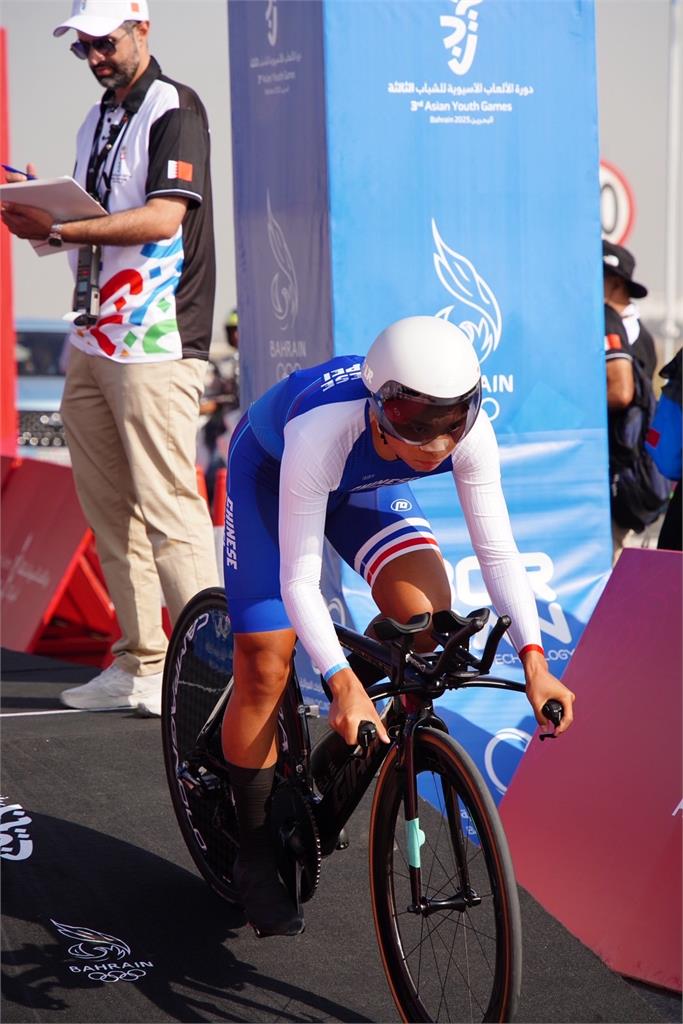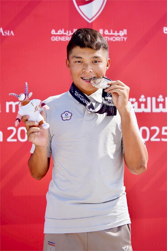 謝治翔在亞青運自由車男子個人計時賽奪銀。圖/中華奧會提供 亞青運再傳捷報!我國自由車選手謝治翔今(27)日出戰巴林亞洲青年運動會自由車男子個人計時賽,以21分47秒64榮獲銀牌,僅與金牌的中國選手差距2秒內。謝治翔來自台中大甲高中,上週才在團體賽拿下一面銀牌,這次又在個人賽上又獲銀牌,可謂雙喜臨門,目前我國獎牌數已得4金7銀11銅。謝治翔上週才在團體賽拿下一面銀牌。圖/中華奧會提供責任編輯/施佳宜