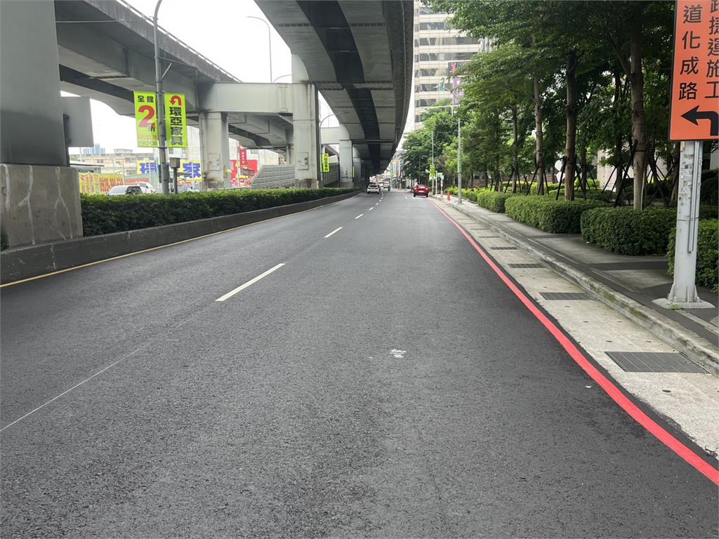 新北工務局114年度進行11條專案道路銑鋪,提升行車平整與安全。圖為新莊區新北大道二、三段改善後。圖/新北市政府工務局提供