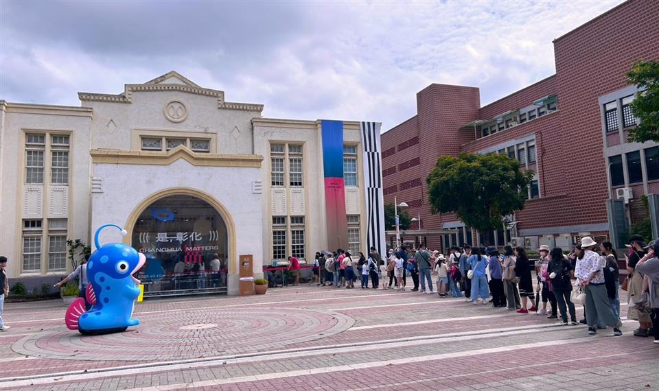 彰化公會堂展出的總行「是,彰化」參觀排隊人潮絡繹不絕。圖/彰化縣政府提供
