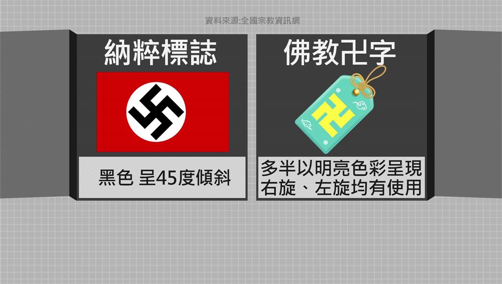 納粹標誌與佛教「卍」字差異。圖/台視新聞製圖避免爭議 達人:出入境勿直接配戴保佑小物