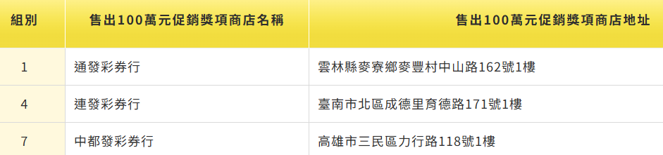 開出百萬紅包的彩券行。圖/翻攝自台彩官網本期大樂透中秋加碼中獎獎號