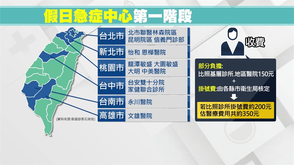 至於收費部分,UCC費用由部分負擔及掛號費兩部分組成,部分負擔比照診所及地區醫院急診,收取150元;掛號費則由各地衛生局協調,原則上與診所相近,若以掛號費200元估算,整體看診費用約在350元左右,預估將遠低於醫學中心急診收費。