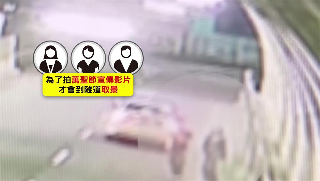 真相是有人想拍萬聖節宣傳影片,在隧道取景。圖/台視新聞雖然3個當事人都說並沒有要嚇人的意思,也已向當事男子致歉,但亂停車又披長髮穿一身黑,站在昏暗隧道裡,恐怕誰看到都會被嚇壞,看似像萬聖節搞花樣,拍片取景玩過了頭,下場是3人全都被警方依法告發。