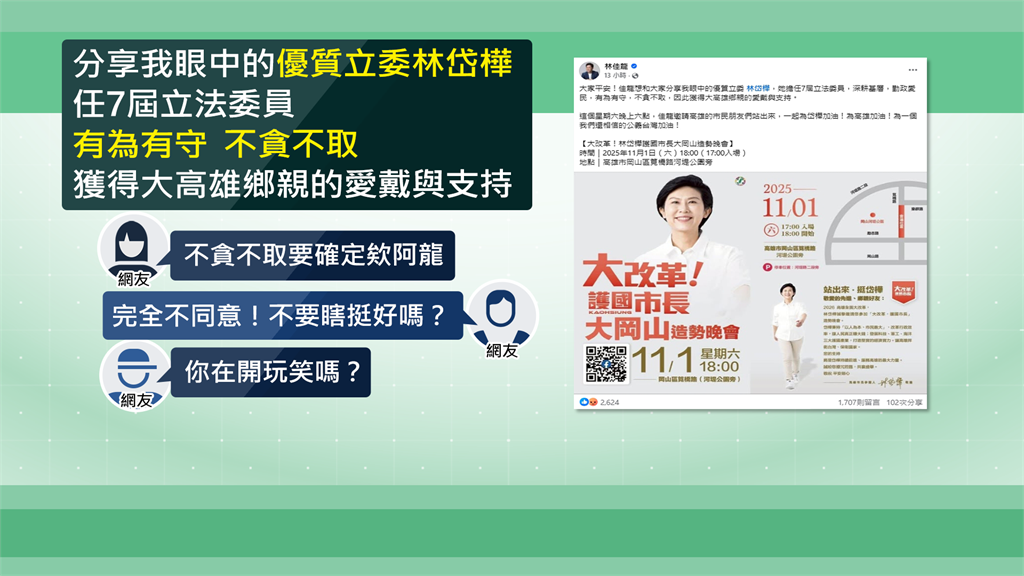 林佳龍挺林岱樺不貪不取 臉書被灌爆「別鬧了」