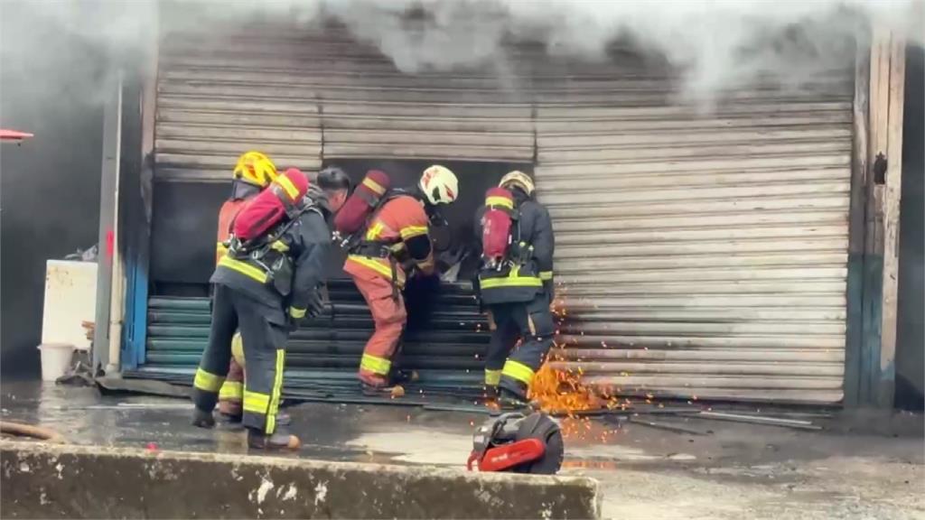 一排鐵皮屋突然起火,濃煙直竄天際。圖/台視新聞 新北市淡水區淡金路二段今(31)晨發生火警,大馬路旁的連棟鐵皮屋冒出大量濃煙,紅色火苗不斷從室內竄出。消防人員將鐵皮屋鋸開進入房屋搜索。圖/台視新聞警消人員接獲報案後,出動50台消防車、120人前往搶救。據了解,燃燒的3間鐵皮屋包括汽修廠、烤漆廠、以及住家,所幸無人受困,火勢已於上午7點撲滅。台北/高妍柔 責任編輯/周瑾逸