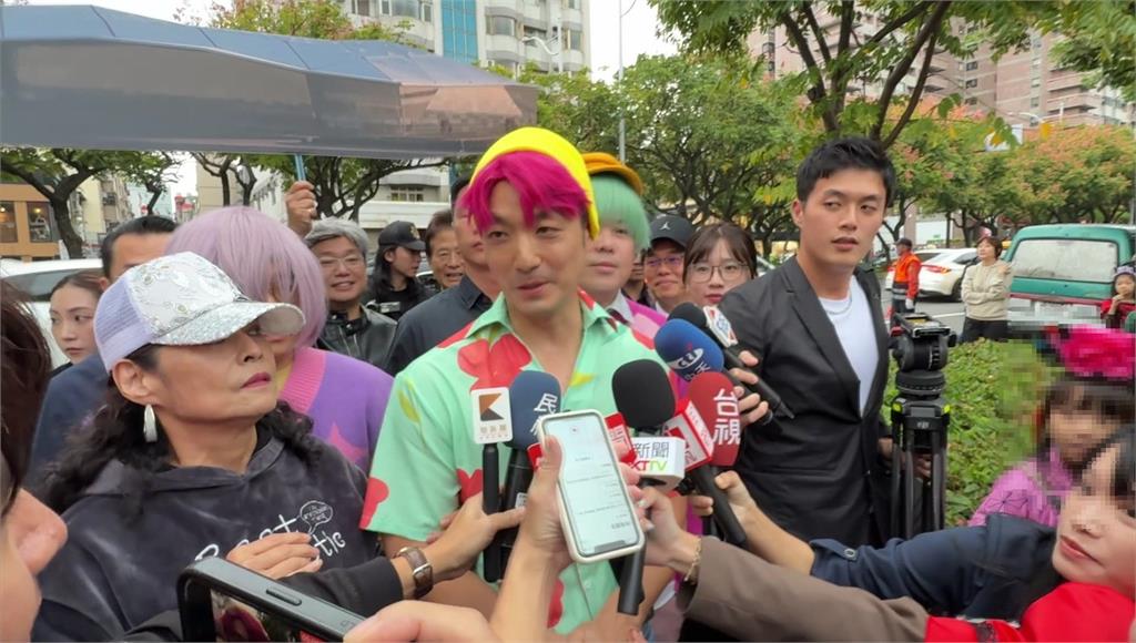 北市立委吳思瑤發糖,陳賢蔚「Jensen裝」現身。圖/台視新聞被綠色外星人抓走 黃國昌變裝喊「救我」