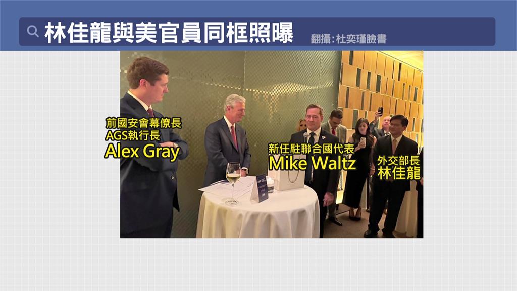 不過PTT創辦人杜奕瑾隨即PO出當天照片,林佳龍不僅與美國新任駐聯合國代表麥克瓦爾茲(Mike Waltz)、前國安會幕僚長、現任美國全球戰略公司執行長葛雷(Alexander Gray)以及川普特使同台,至少以官方身分會見了30多個國家的外交部長、大使及官員。