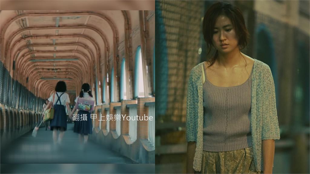 電影《女孩》中,姊妹倆身穿制服並肩站在中山人行陸橋上,飾演母親的9m88也在同一座陸橋上。圖/翻攝自甲上娛樂Youtube、FB片中的取景地「基隆中山人行陸橋」,已經不是第一次出現在電影中。早在2001年,侯孝賢的《千禧曼波》中,舒淇經典的回眸畫面,場景正是在這座天橋,也讓這座橋被稱為「舒淇橋」。