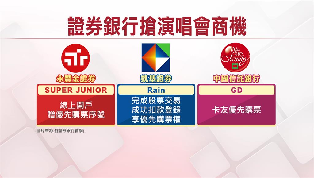 永豐、凱基、中信等證券銀行搶演唱會商機。圖/非凡新聞二姐、Jolin票太難搶? 銀行卡友特權幫你卡位