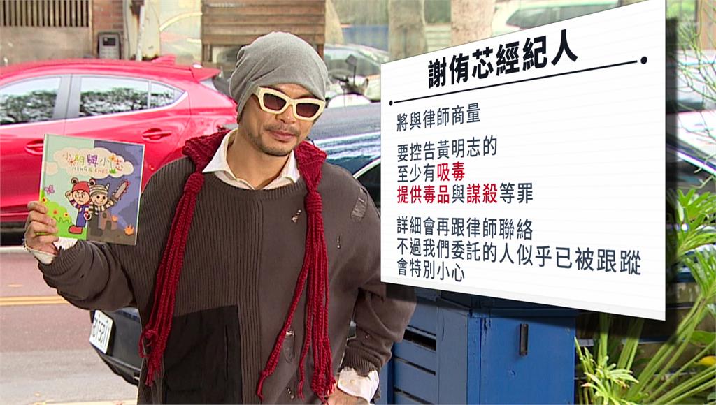 昔日和謝侑芯同框畫面,如今黃明志卻成了命案現場關鍵人物,謝侑芯經紀人將與律師商量,要控告黃明志的至少有吸毒、提供毒品與謀殺等三項罪名,詳細會再跟律師聯絡,不過委託的人似乎已被跟蹤,會特別小心。