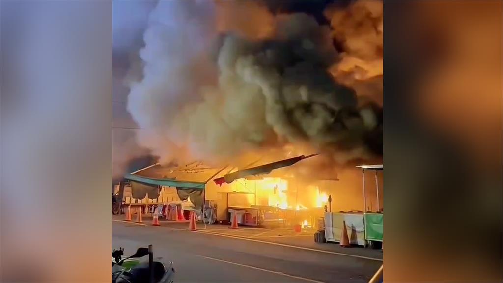 市場前半部遭熊熊大火延燒,大量濃煙直竄天際。圖/民眾提供