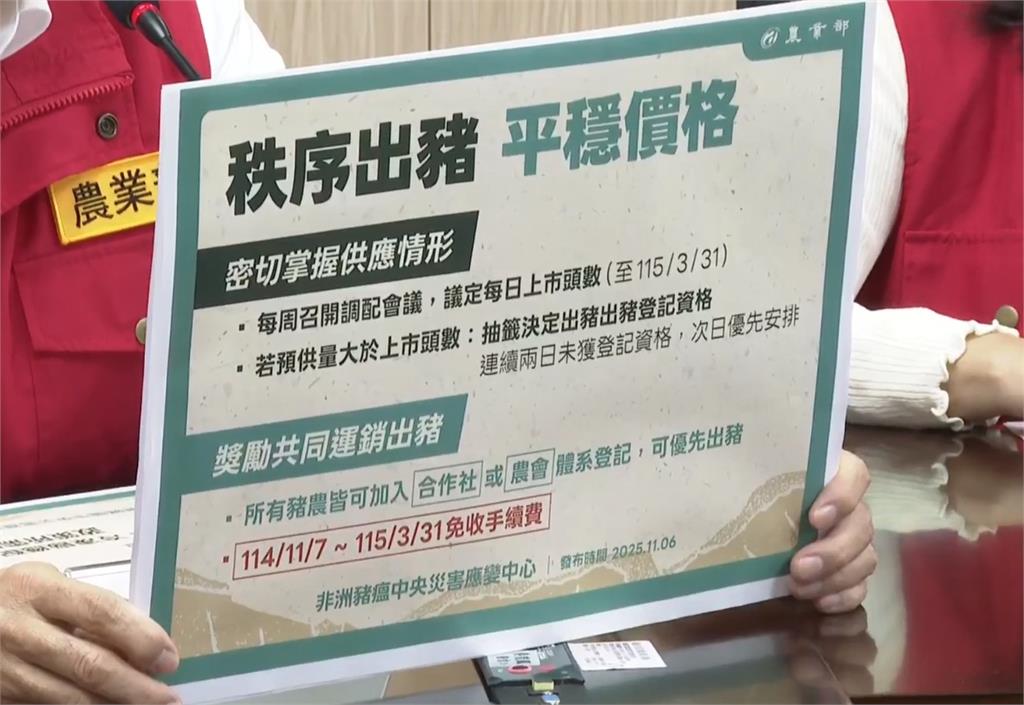 李宜謙指出,若預估上市頭數超過預定量,將以抽籤方式決定出豬登記資格;若豬農連續兩天未獲登記,將於次日優先安排登記,以確保各地豬農都能順利進場交易。農業部也規劃以獎勵方式,鼓勵豬農透過合作社與農會共同運銷,至明年3月底前免收手續費。