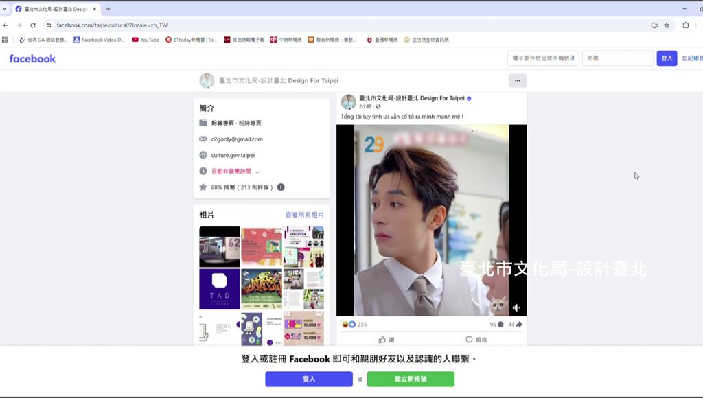 北市文化局也於官網指出,臉書專頁「台北市政府文化局」受駭客影響,無法正常運作,已聯絡臉書 Meta 公司依法申訴並報警,及通報本府資訊局、數位部資通安全署處理。提醒民眾近期收到臉書專頁私訊聯繫,請務必提高警覺。