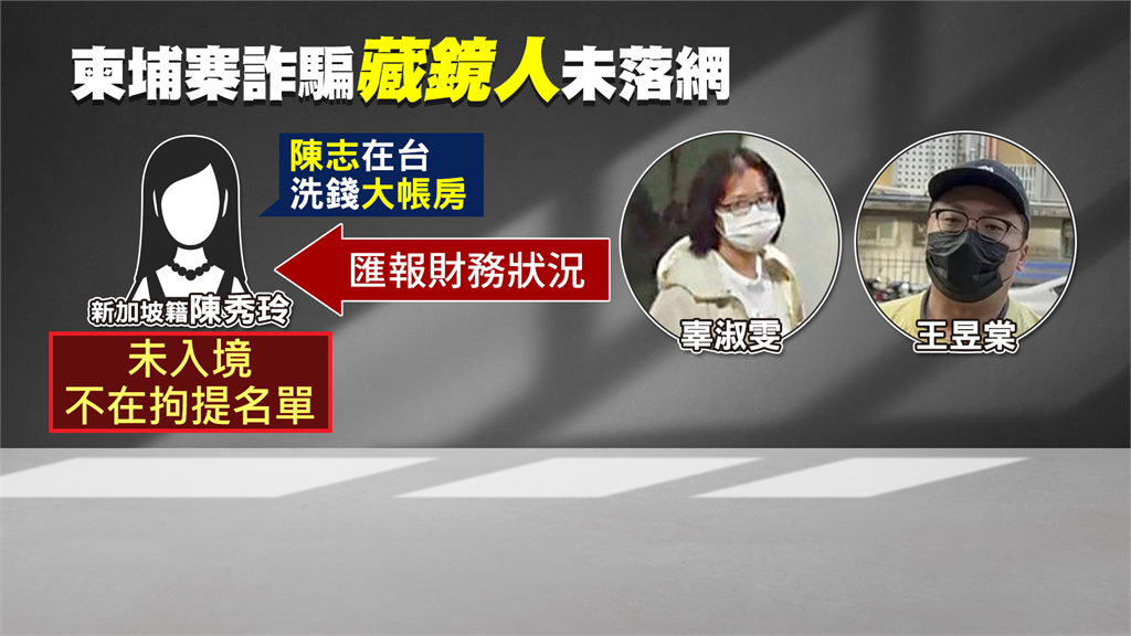 柬埔寨「太子集團」跨國犯罪組織,詐騙洗錢網遍布全球,這回落網的台灣高階幹部中,還有一名關鍵藏鏡人,新加坡籍的陳秀玲,她是該集團在台洗錢的「大帳房」,位階極高,連辜淑雯、王昱棠都得聽命於她,每月向其匯報財務狀況。不過,由於她未入境,因此未列入這次拘提名單。