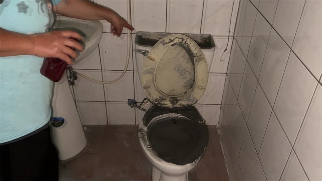 雖然光復市區恢復約七成,但郊外地區仍有大量泥土堆積。圖/台視新聞在佛祖街一帶,部分受災戶家中仍未完全復原,有居民家裡的馬桶被淤泥灌滿,只能苦笑形容是「另類藝術品」。居民表示,目前雖已清出大部分沙土,但仍處於「有電沒水」的狀況,暫時無法回家。
