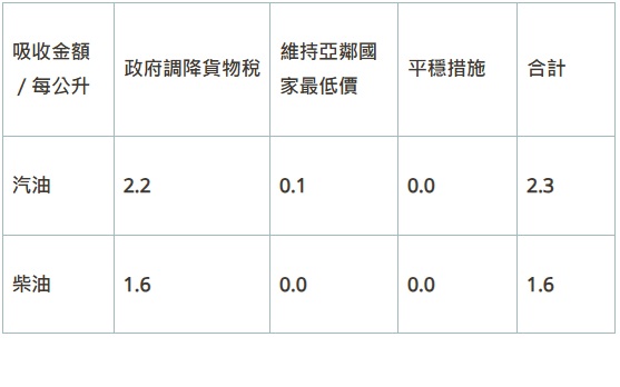 台灣中油表示,按浮動油價機制調整原則,汽油每公升應調降0.1元、柴油價格應不調整,惟為維持價格低於亞洲鄰近國家(日、韓、港、星),汽油吸收0.1元。