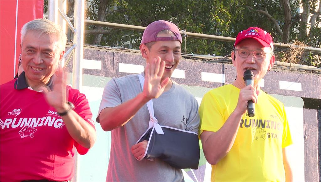 吳怡農的手還吊著繃帶,天還沒亮就到河濱公園和跑者們打招呼,但為了拚民進黨2026台北市長提名機會,相當積極,幽默自嘲對跑者喊話,「我們身體一定要好好的照顧,不然會跟我一樣,太早就要進場維修」。