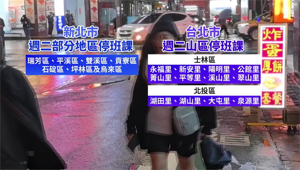 雙北沿海、山區行政區和里週二放颱風假。圖/台視新聞過去北北基桃都採共識決,這回桃園卻罕見脫鉤獨放颱風假,北部四縣市不同調,民眾再度呈現兩樣情。