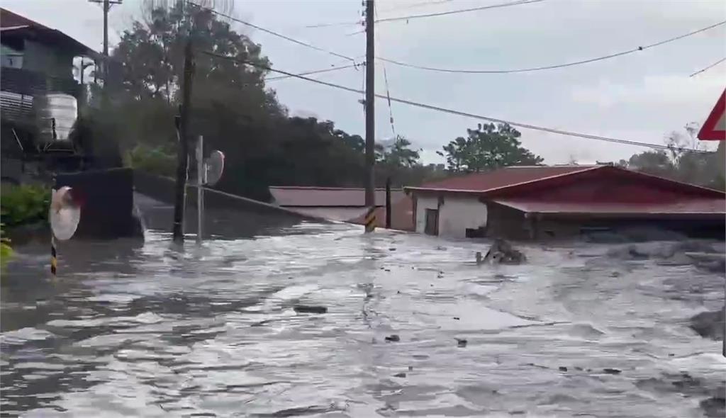 明利村淹水空拍對比圖。圖/台視新聞 鳳凰颱風外圍環流加上東北季風共伴效應,對北台灣、花東地區帶來驚人雨量,花蓮縣11、12日兩天累積雨量232毫米,馬太鞍溪水位高漲,不僅沖斷便橋,更夾帶大量泥沙沖入下游部落,不少民宅一層樓直接消失,昨今兩天同一個區域對比圖曝光,可見水流、水淹高度,當地居民無奈嘆「來就來了也沒有辦法」。馬太鞍溪水近日暴漲,北岸堤防疏濬車輛通道傳出是潰堤缺口,讓水勢湧入明利村內,雖然早已撤離村民,但民宅難逃淹沒滅頂,11日雨量趨緩,可見到大量泥沙湧入較低地勢的住家中,時隔24小時,12日明利村再發生淹水,滾滾泥水傾瀉流下,民宅一樓消失、僅露出屋頂上的水塔。馬太鞍溪水暴漲,明利村淹水。圖/台視新聞而從空拍圖對比可看到,相同位置的廣場、雕像,相隔一天淹水嚴重,雕像原本還露出底座,僅地上大量泥沙,今天就明顯可見到水流不斷沖刷至雕像頭部,廣場平面也消失,部分路段也看不出方向。明利村一處廣場、雕像原本還可看出底座,今早遭大量泥水沖刷。圖/台視新聞明利村居民黃大哥提到,前一天晚上雨勢一波一波下,雨很大,底下水溝都滿出來,有看到很多東西流走,更無奈表示從沒看過這樣,但來就來了沒有辦法,且鄰居都是認識的人,一個家就這樣沒了,雖然自己家沒事,但看到心情都不好。明利村民宅、道路遭淹沒。圖/台視新聞責任編輯/張碧珊