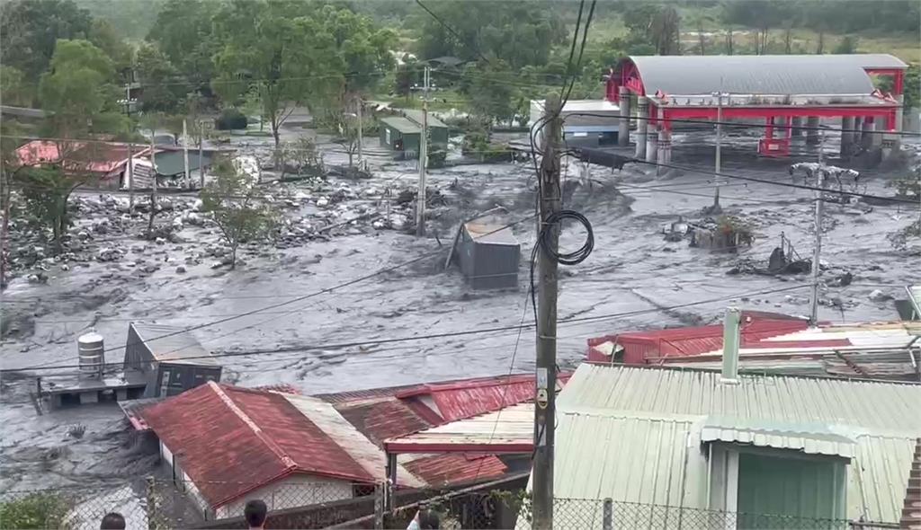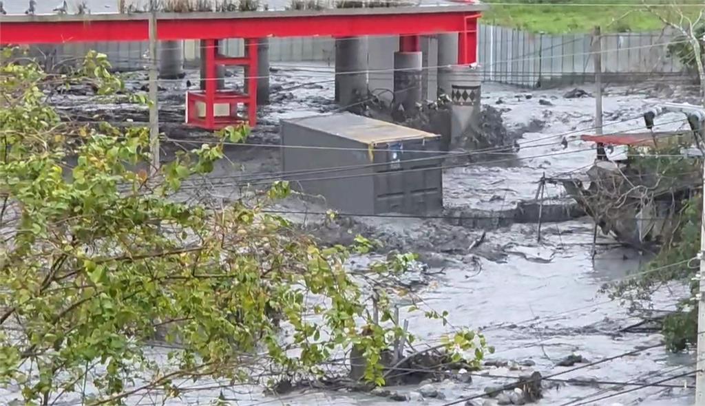 民眾站在高處目睹貨櫃被沖走。圖/台視新聞 花蓮馬太鞍溪出現嚴重溢流,溪水湧入萬榮鄉明利村,今(12)日下午1時左右水勢又變大,泥水相當湍急,甚至有村民的貨櫃順著急流往下游衝走,沿途還撞到電線杆,不斷發出巨響,一個貨櫃則卡在民宅旁。站在高處的民眾見到這一幕,驚呼連連。明利村貨櫃被沖走。圖/台視新聞而當時還有一位雞寮主人去查看被沖垮雞寮時,遇到水位突然升高,還有貨櫃衝下來。雞寮主人兒子在高處,看見爸爸就在河床邊,嚇得衝下來大喊叫爸爸趕快逃生。責任編輯/施佳宜