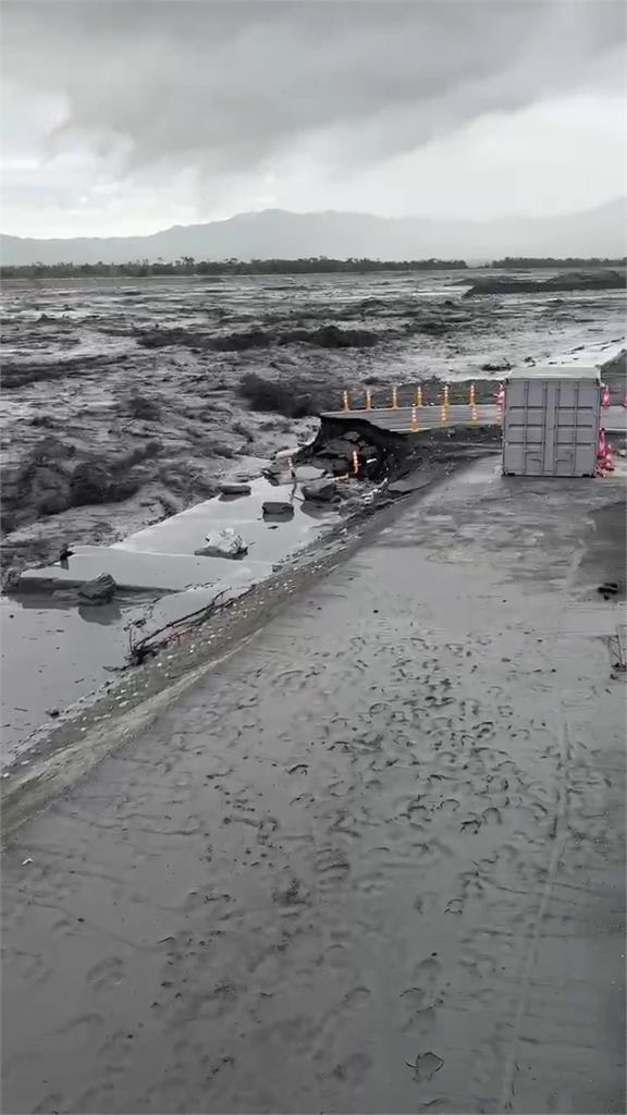 馬太鞍溪便橋週遭水勢強勁。圖/台視新聞責任編輯/馮康蕙