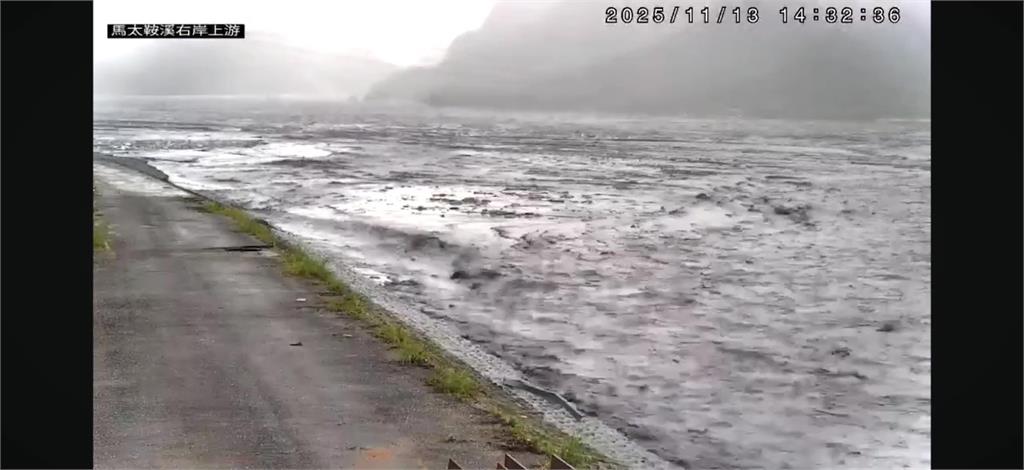 馬太鞍溪右岸水位上升速度非常快。圖/台視新聞