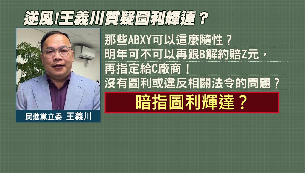 輝達海外總部落腳北士科案,北市府與新壽合意解約,市議會週三完成備查,民進黨議員群更高喊「支持輝達、盡速簽約」。沒想到同屬民進黨籍的立委王義川卻質疑不用招標就指定給輝達,沒有圖利問題嗎?北市議長戴錫欽開砲王義川是綠營「豬隊友」,就連自家人也不挺,立委王世堅喊話圖利輝達就是圖利台灣。