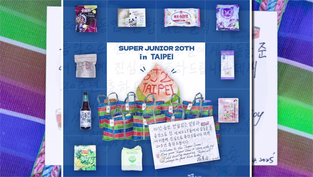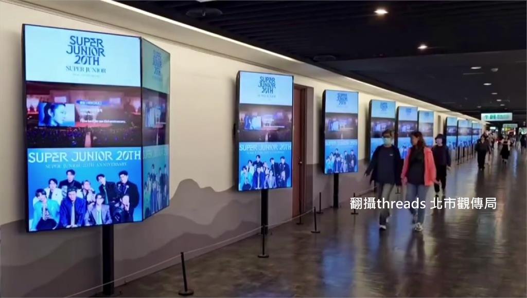 大巨蛋附近充滿寶藍色氛圍。圖/翻攝自北市觀傳局@threads迎接人氣男團Super Junior,北市府觀傳局也將大巨蛋周邊打造成寶藍色氛圍,除了首創在捷運站內輪播SJ歌曲,還有藍色廊道、驚喜跑馬應援等,市長蔣萬安更親自手寫卡片,準備滿滿台灣味的零食、台味十足的茄芷袋及一顆巨型壽桃,邀請「灶咖男團」常常來。蔣萬安也在受訪時表示,「我們事前都會和演出方他們來溝通,呈現一個歡迎這些表演團體來演唱會城市的氛圍,也就會設計出不同的彩蛋。」