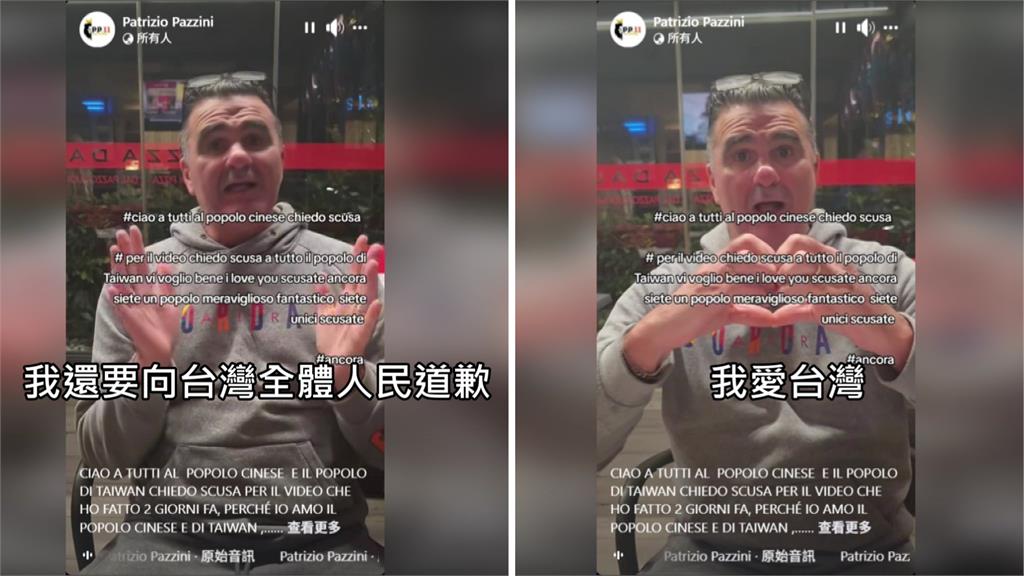 坐在鏡頭前大喊我愛台灣,並表達歉意,強調不會再發生,他是義大利中部一間披薩店老闆,特地跨海致歉,原因就出在他先前發布的影片。有16名台灣遊客到店用餐,卻只點了5個比薩跟3杯啤酒,讓義大利老闆氣到抓狂,發出影片對著遊客的臉狂拍,大喊「親愛的,這裡簡直瘋了,我們這邊有16個中國人還日本人。來,點了幾個披薩?5個,16個人點了5個披薩!」