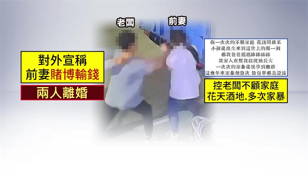 這名老闆對外宣稱,前妻因賭博輸錢,兩人因此離婚。不過前妻怒控表示,受不了對方不顧家庭、在外花天酒地,還多次對她家暴,婚姻才會告終。