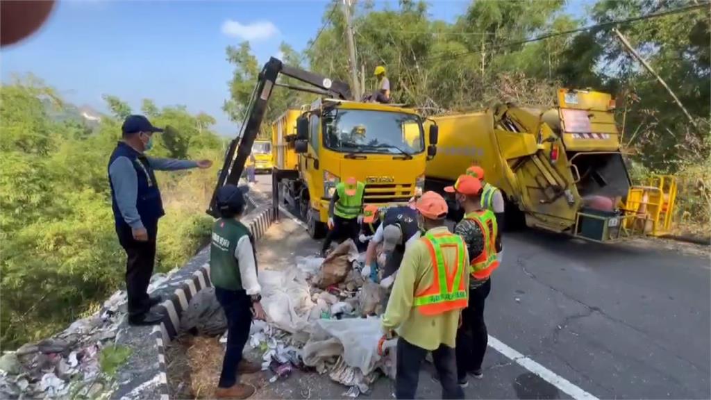 現場垃圾數量驚人,環保局獲報前來清理。圖/台視新聞環保局表示,這類非法傾倒行為已經違法,已經向附近的民宅調監視器,掌握可疑的車輛動向,後續如果查獲行為人,除了依法裁處6000元到300萬元的罰鍰以外,也將移送法辦。