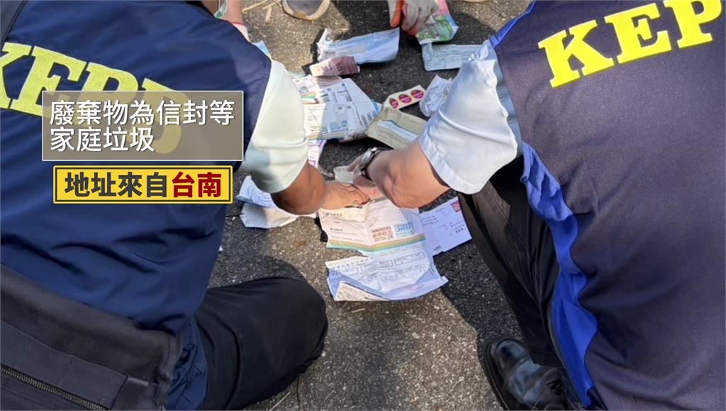這麼多垃圾到底從哪來?環保局人員會同警方破袋檢查,仔細翻找廢棄物,試圖找出蛛絲馬跡,裡面有信封、出貨單、帳單等,幾乎都是家庭生活垃圾,更驚人的是,單據上的地址竟然來自台南佳里和善化。