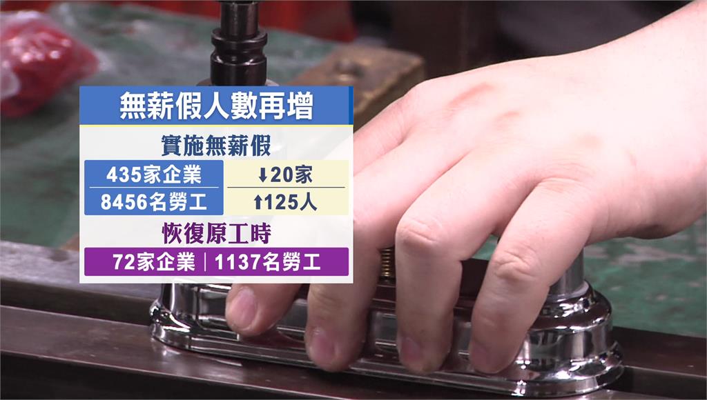 全國共有435家企業、8456名勞工放無薪假。圖/非凡新聞勞動部公布最新「減班休息」,也就是無薪假的統計,這次呈現家數減少,但人數增加的現象。根據最新公布的數據,全國目前共有435家、8456名勞工實施無薪假,比上一期減少20家,但人數微幅增加125人。另有72家企業,因屆期未續報或提前終止無薪假,有1137名勞工恢復原工時。勞動部指出,製造業仍是重災區,其中金屬機電業受到訂單波動影響最深,實施人數超過6000人,是所有產業中比例最高的類別。