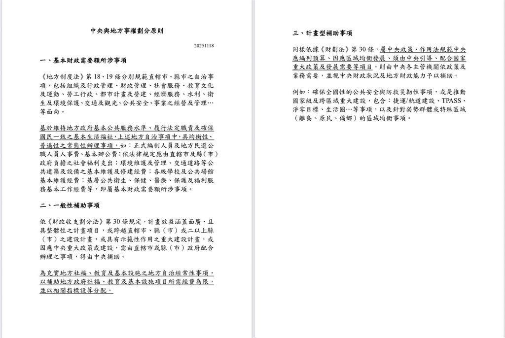 行政院研擬的財劃法修法草案預計於明(20)日送進院會討論。相關內容昨天已第六度與地方政府協商,不過有地方政府反映,在協商中只拿到一張A4紙,裡面沒有計算公式,也沒有具體計算基礎,卻仍被要求背書,對此感到不滿。