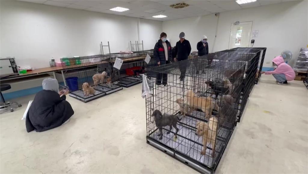 民眾到苗栗縣動物防疫所認養小狗。圖/台視新聞人人犬舍業者為了繁殖販售品種犬,不但超養,還違法剪除聲帶,遭苗栗縣政府開罰480萬元並撤銷執照。而犬舍內共273隻毛小孩全數沒入,其中6歲以下犬隻原本送往取得許可證的寵物業者,卻遭動保團體質疑讓毛小孩再度成為繁殖工具,因此全數再運回苗栗收容所,開放民眾來認養。