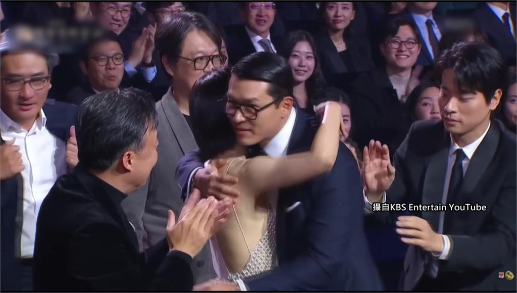 玄彬獲獎時,和妻子孫藝真愛的抱抱。圖/翻攝自YouTube@KBS Entertain在得知獲獎瞬間,玄彬感動地和妻子孫藝真相擁,上台致詞時,更不忘放閃告白,「光是存在就帶給我很大力量,我的妻子藝真還有兒子,我非常愛你們,也非常感謝你們!」坐在台下的孫藝真大方用手比出愛心回應,超甜互動讓全場羨慕不已。