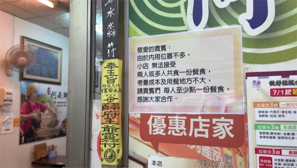 店家公告,內用每人至少點一份餐食,或是炸物、湯品。圖/台視新聞彰化/戴榮懋 責任編輯/陳盈真