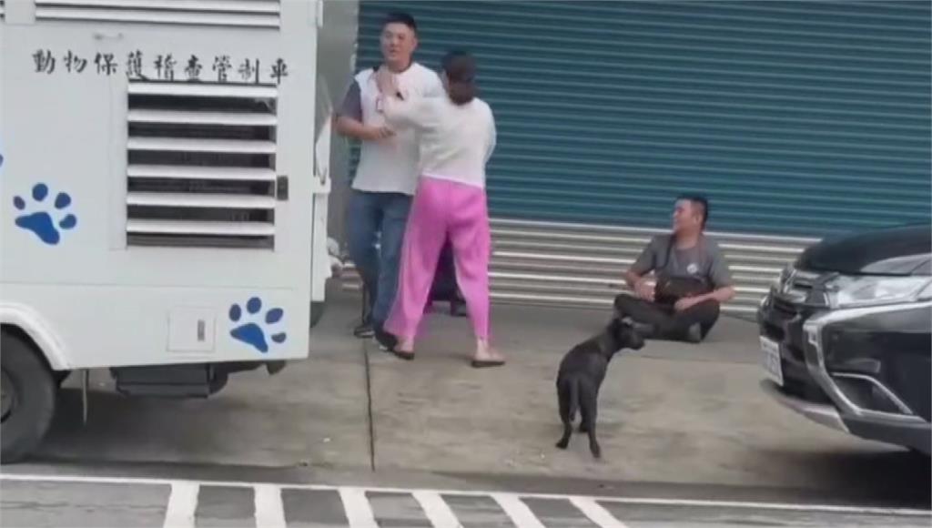 愛媽與動保人員發生衝突。圖/台視新聞嘉義縣竹崎鄉今年六月起發生多起遊蕩犬追車、咬人,甚至造成民眾跌倒骨折的意外。家畜所人員獲報到場,卻遭女子惡言相向,甚至情緒失控、一連推了動保人員七次。