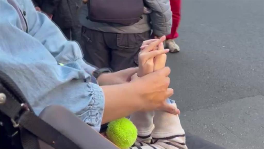 這名媽媽帶著罹患腦麻的孩子去復健,巧遇北港媽祖鑾轎南巡。圖/台視新聞台南一名7歲男童罹患腦性麻痺,行動能力受限,20號時媽媽帶小孩去結束後在中西區巧遇北港媽祖鑾轎南巡,媽媽當下雙手緊握住孩子的手,在路旁迎接北港媽祖南巡,沒想到被宮廟方注意到,破例邀請他們來鑽轎底。媽媽表示,真的很幸運讓媽祖看到我們了,感謝媽祖慈悲、廟方人員支持讓我們可以實現這個願望,「很感動,我們不是被放棄的那一群」。