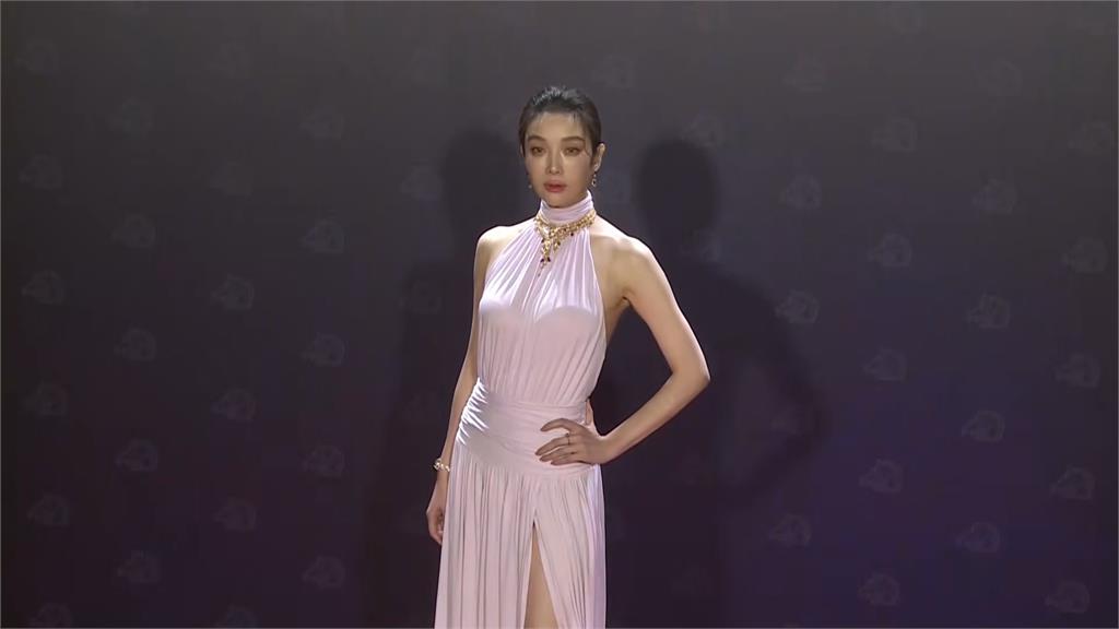 鄒時擎身穿亮金色亮片深V禮服走上紅毯,貼身剪裁在燈光下折射出層層光影;蔡淑臻則以粉色高領禮服登場,裙襬開衩在步伐間帶出流動感;馬士媛身著深色透視薄紗長禮服,細肩帶與輕薄布料相互呼應,展現簡約俐落的線條。