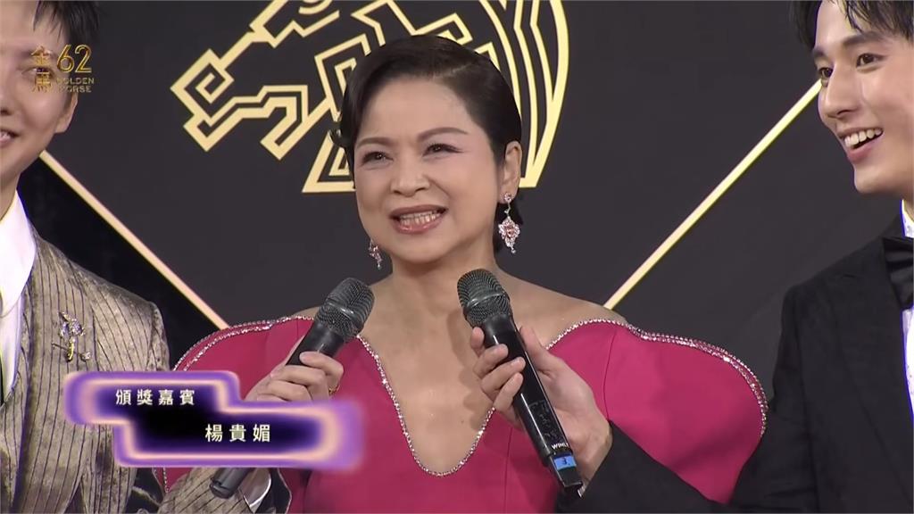 第62屆金馬獎今(22)日登場,今年以頒獎人身分出席的影后楊貴媚華麗現身,換上亮眼桃紅色深V禮服,搭配下擺透視薄紗與黑白相間高跟鞋亮相,一下禮車便引起粉絲們尖叫歡呼。