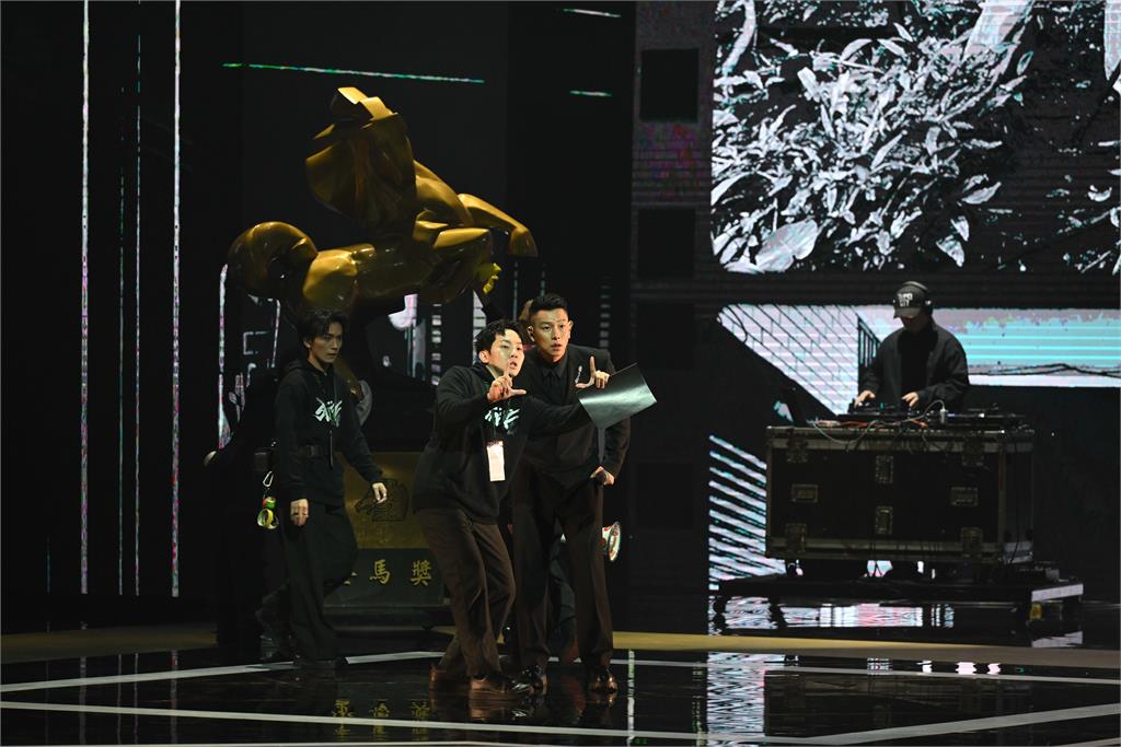 頑童開場帥翻全場。圖/台視 第62屆金馬獎頒獎典禮今(22)晚,由頑童MJ116開場,大玩「96分鐘」梗,頑童先在前導片片尾現身,隨後霸氣登台,以〈兄弟們要進城〉開場,瞬間點燃全場,氣氛嗨到最高點。頑童在前導片亮相。圖/台視〈兄弟們要進城〉開場,瞬間點燃全場。圖/台視接著,他們以〈Here We Are〉抒情饒舌帶入,將片場與後台包括打板、燈光、收音等景象搬上舞台,讓觀眾一窺電影幕後的辛勤付出與團隊合作,也向電影人致敬。頑童精彩表演感動全場。圖/台視責任編輯/蔡尚晉