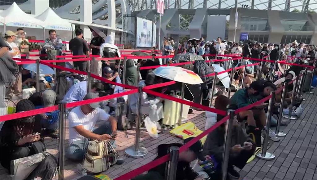 頂著豔陽,世運廣場前ONCE們大排長龍,搶著買演唱會周邊商品,ONCE每個人大包小包,只要跟TWICE有關的周邊都想收藏,甚至有人一口氣豪買5萬多元。有不少人前一天下午才在小港機場接完機,就直接到現場守一夜卡位。