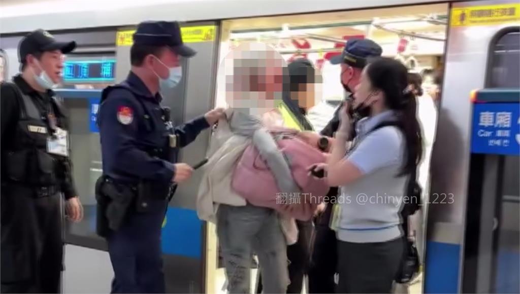白髮婦人被警方上銬帶下車。圖/翻攝自threads@chinyen_1223捷運警察隊第四分隊分隊長王碧泉表示,本案後續由萬華分局依恐嚇罪偵辦,台北捷運公司也將依大眾捷運法第50條之1規定裁處。所幸婦人行為沒傷到其他人,但她的危險舉動不只讓自己送辦,還引發了一場捷運驚魂。