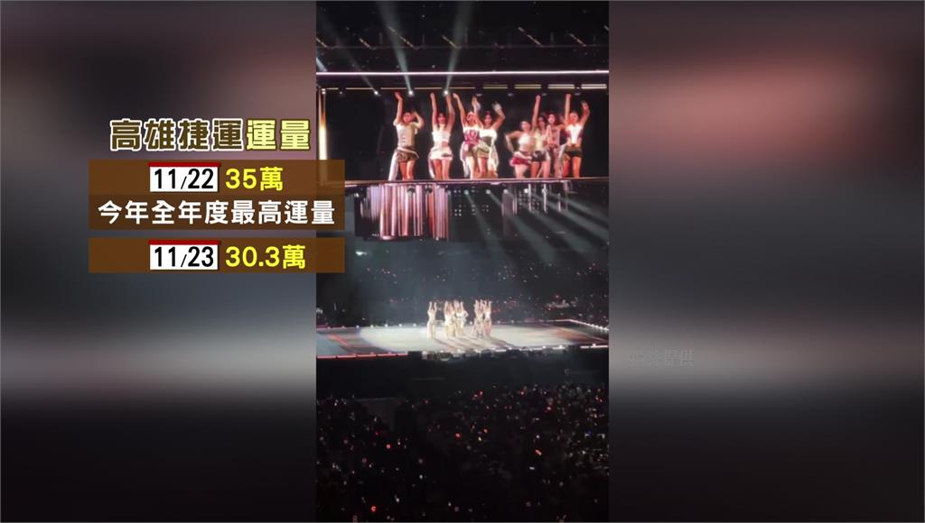 而除了TWICE演唱會,上週末高雄舉辦各大演唱會和活動,包含伍佰、孫淑媚等人也都開唱,吸引18萬人潮湧進港都,高雄經發局估計這兩天創造的觀光產值超過5億元。